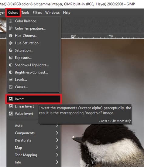 how to invert image colors gimp